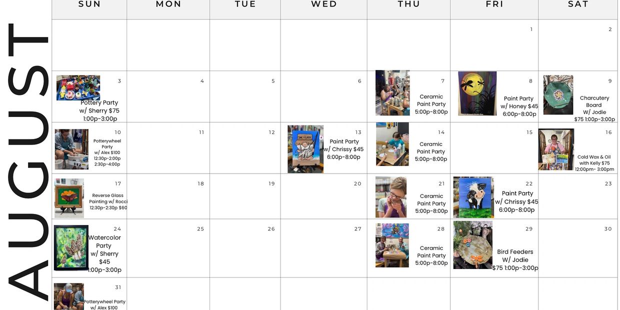 Schedule your next birthday party, company party, or just walk in, pick a project, and get creative!